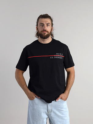 Футболка мужская свободного покроя с короткими втачными рукавами. Горловина круглая, обработана воротником из полотна с эластаном. Перед футболки декорирован принтом "ВОЗВЫШАТЬСЯ".